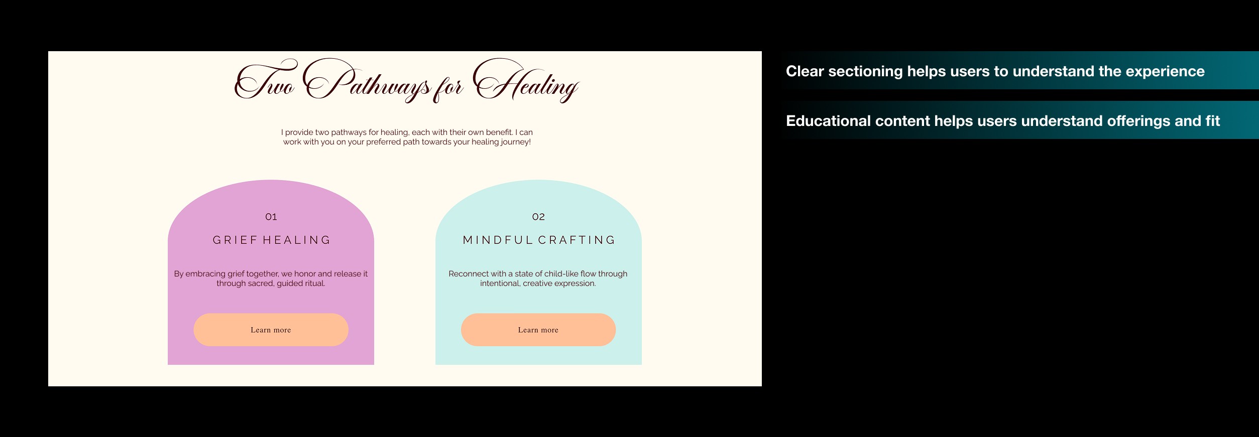 The business had no existing digital presence, making it difficult to communicate its offerings, establish credibility, or guide users toward engagement. The challenge was to create a cohesive, trustworthy experience that clearly conveyed the brand while supporting users in an emotionally sensitive space.