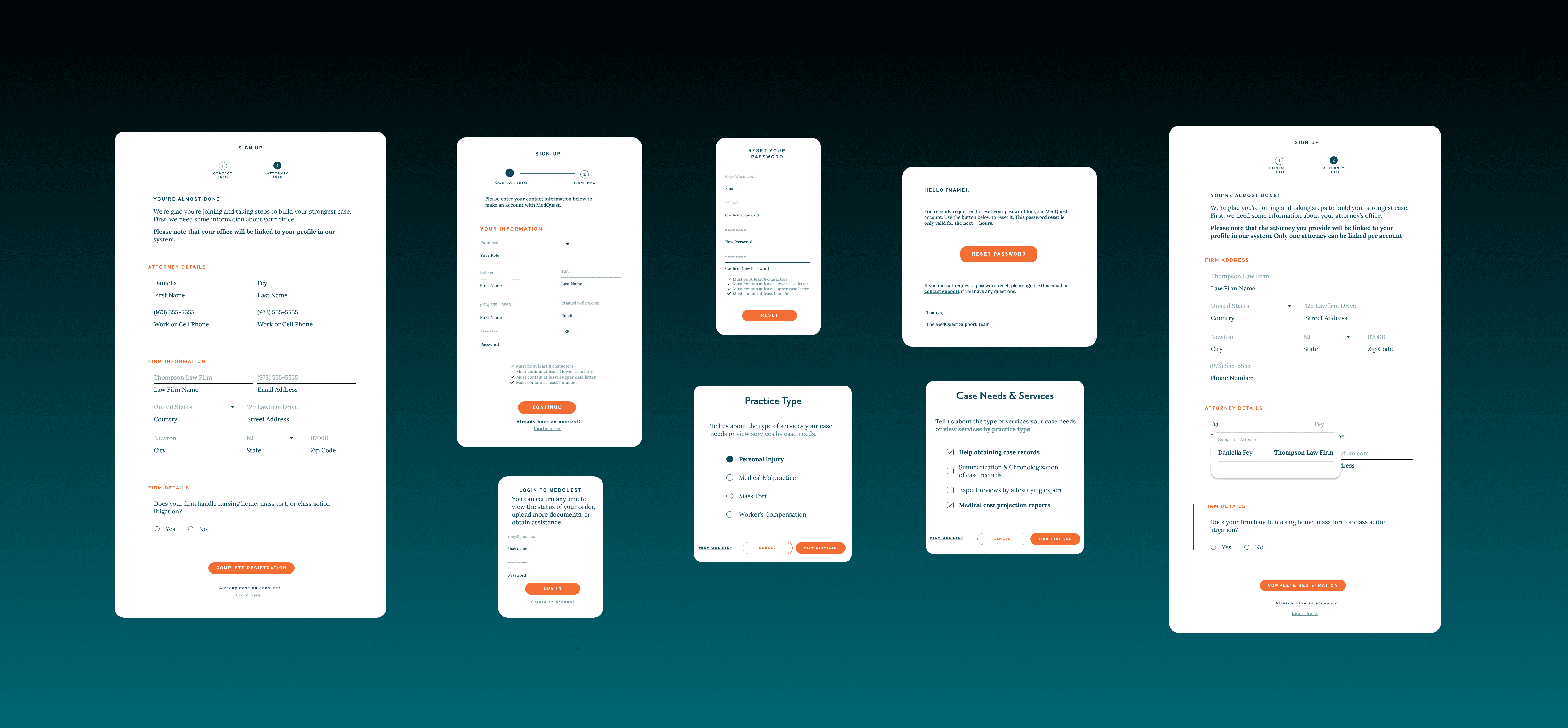 Through collaboration with engineering and stakeholders, we determined that attorney and firm details were required due to backend dependencies. The final solution streamlined this into a two-step flow with auto-populated information, reducing redundancy and keeping users moving efficiently.