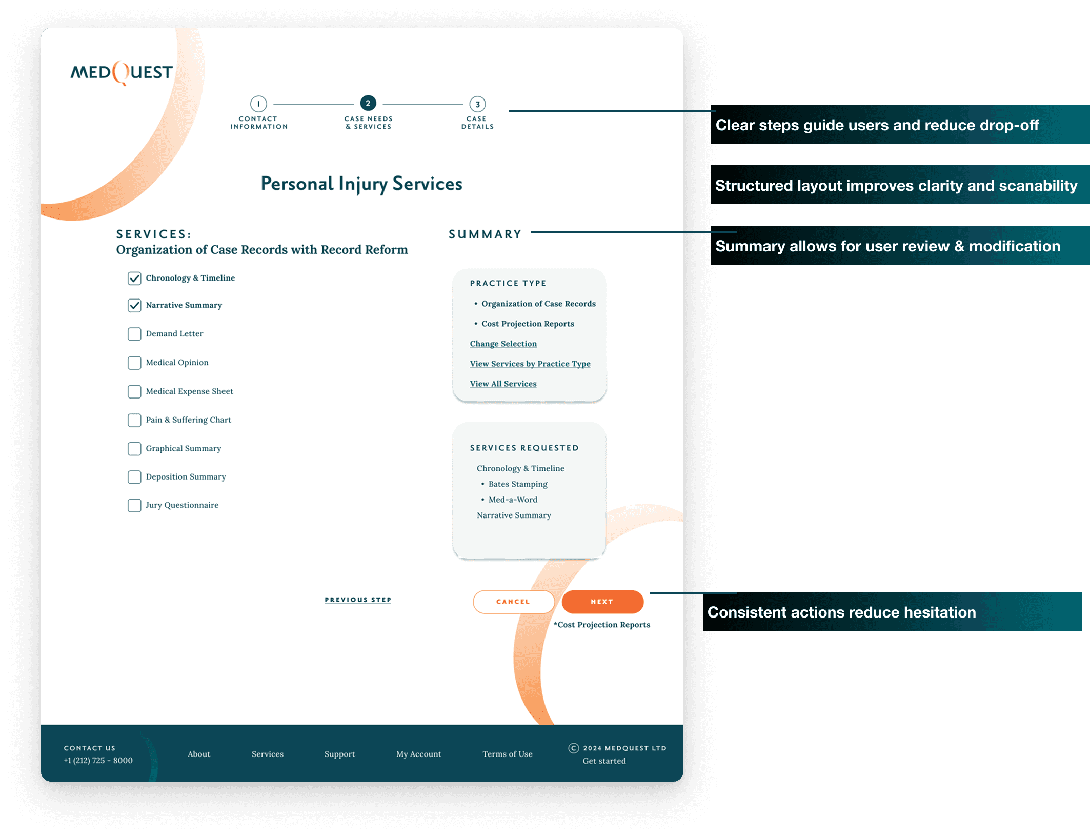 The interface was also aligned with MedQuest’s brand to create a consistent, professional experience that reinforces trust